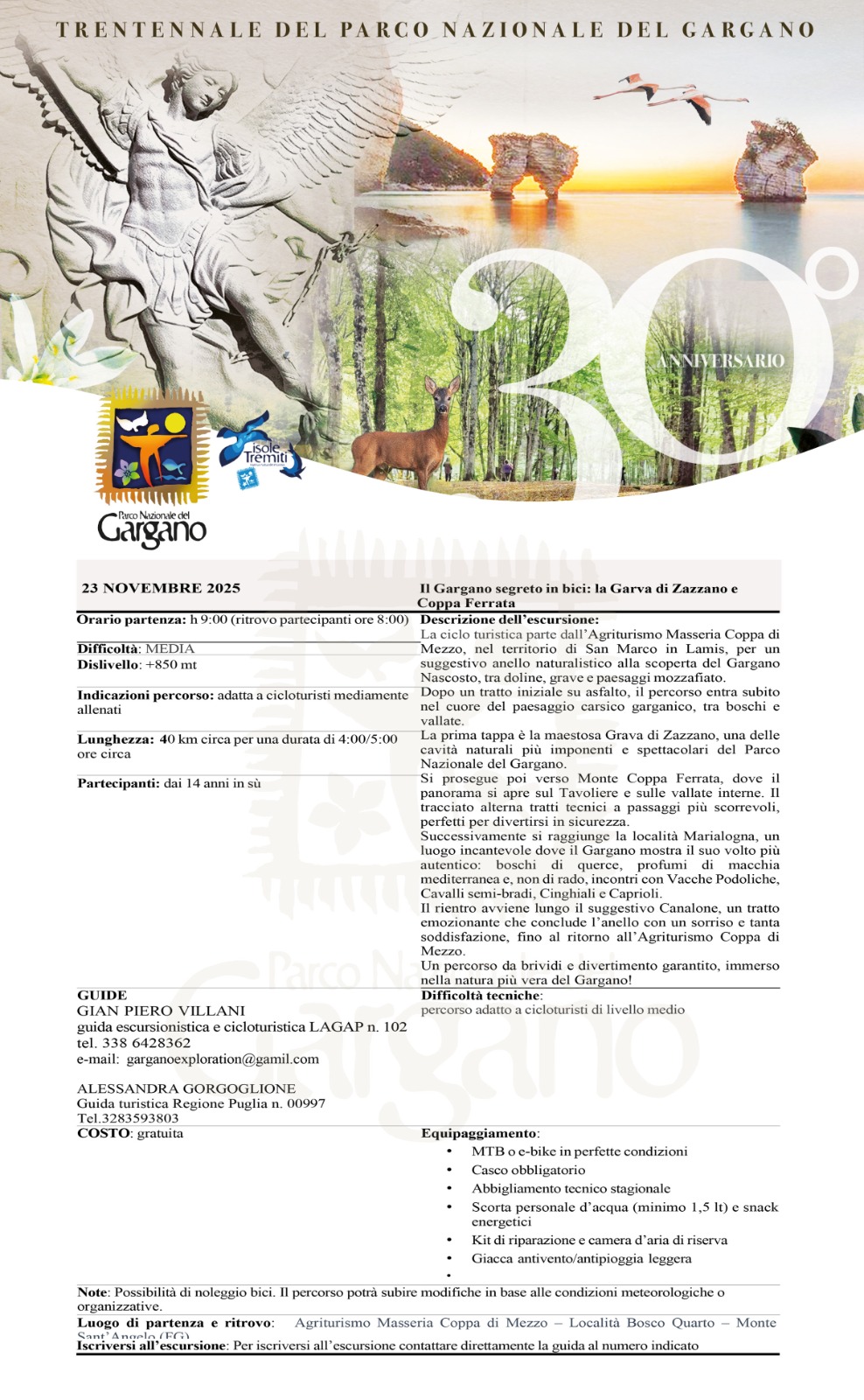 • Il Gargano segreto in bici: la Grava di Zazzano e Coppa Ferrata – Guida Gian Piero Villani (LAGAP n.102), Agriturismo Coppa di Mezzo – Bosco Quarto. Tel. 338 6428362 – garganoexploration@gmail.com – Programma