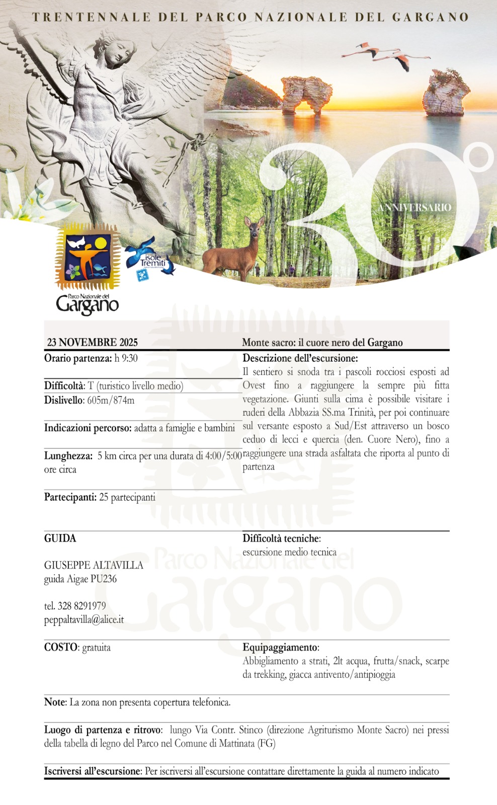 • Monte Sacro: il cuore nero del Gargano – Guida Giuseppe Altavilla (AIGAE PU236), Contrada Stinco – Mattinata. Tel. 328 8291979 – peppaltavilla@alice.it – Programma